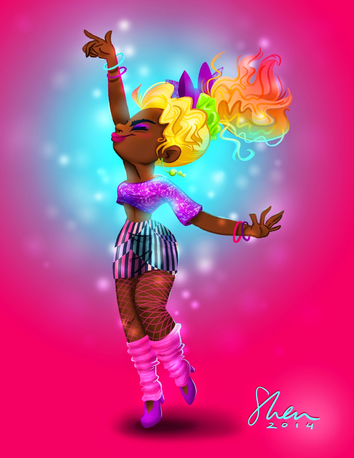 An 80's club scene themed drawing - let's dig up those forgotten legwarmers and patterned everything!